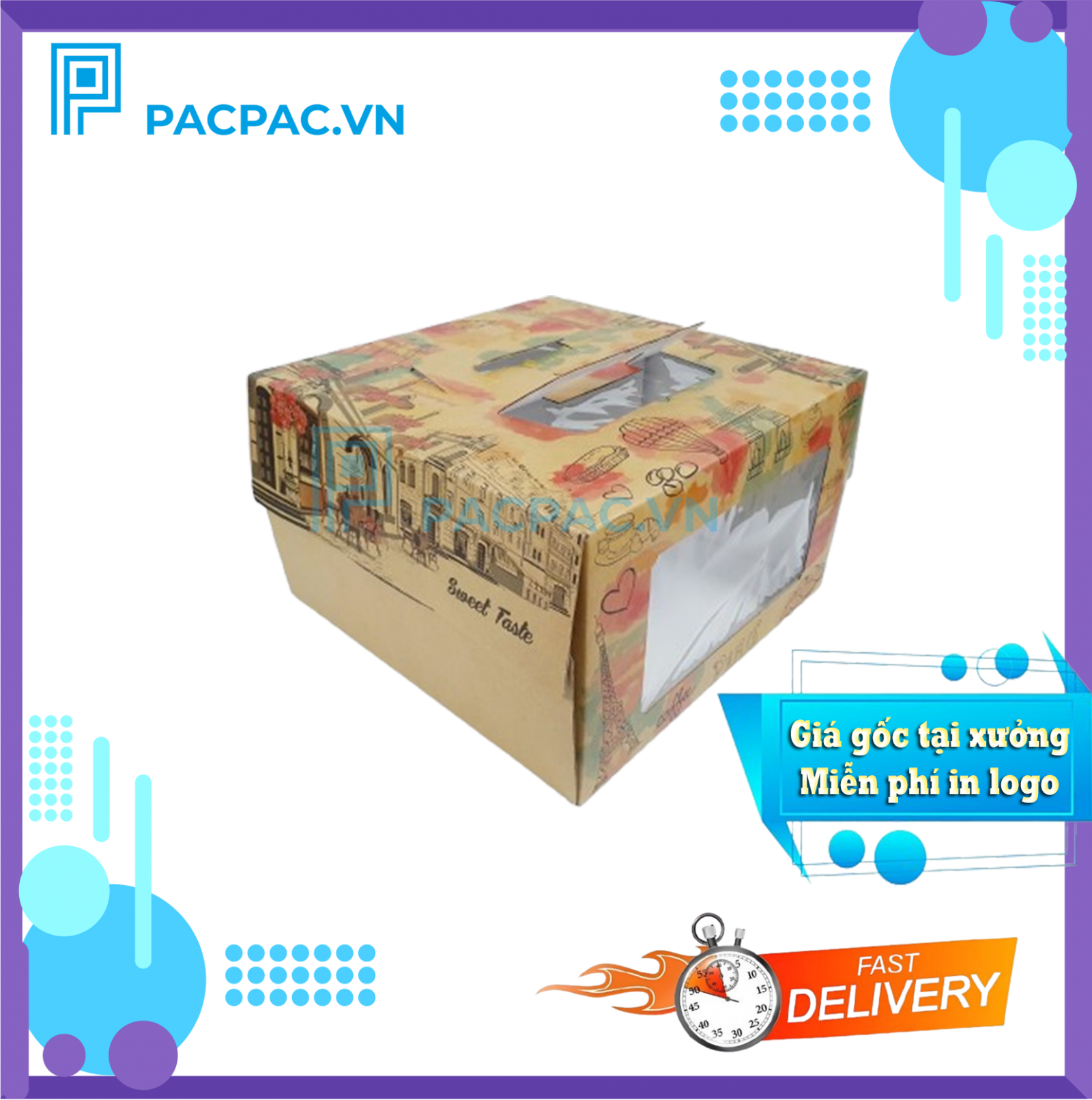 ➡️ Hộp phù hợp: Hộp bánh kem nắp trong, đáy thấp, size 12x12x10 hoặc 15x15x10 – PacPac luôn sẵn kho.